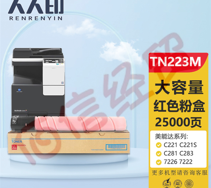 人人印 美能達(dá)TN223紅色墨粉盒 柯尼卡美能達(dá)TN224 C256 C266 C7222 C7226墨盒 柯美C226碳粉 (大容量) 自營(yíng)