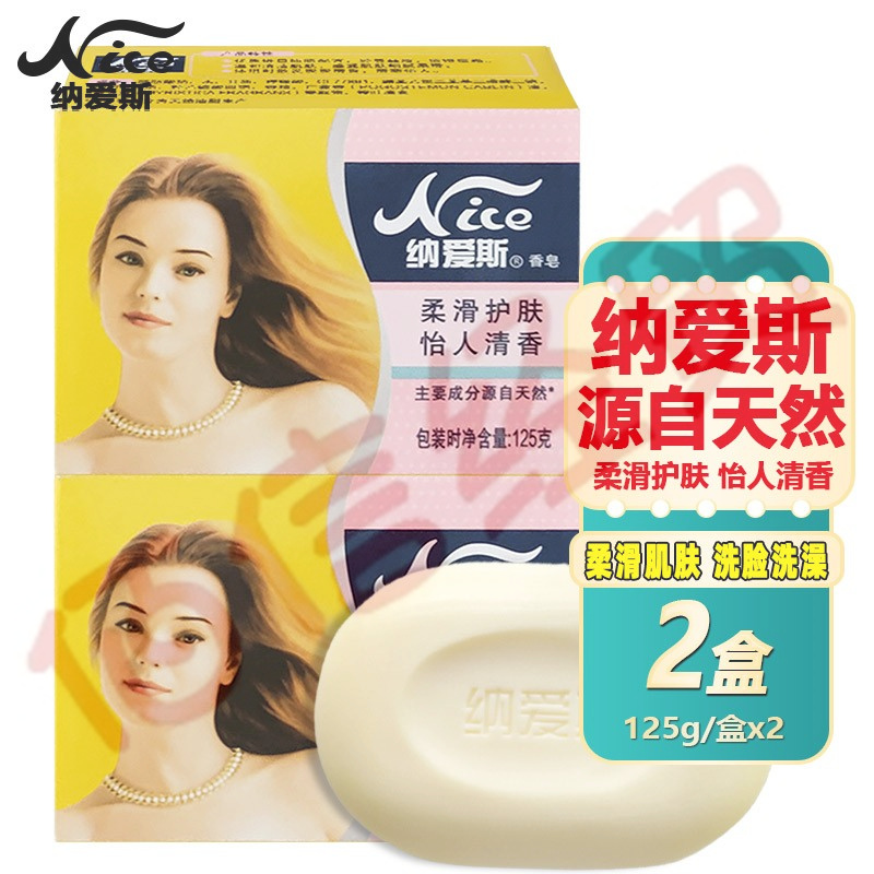 納愛斯盒裝香皂(怡人清香 柔滑護膚)女士沐浴皂洗澡洗臉清潔潔膚潔凈肌膚 125g×2塊(18組=36塊---整箱售) 自營