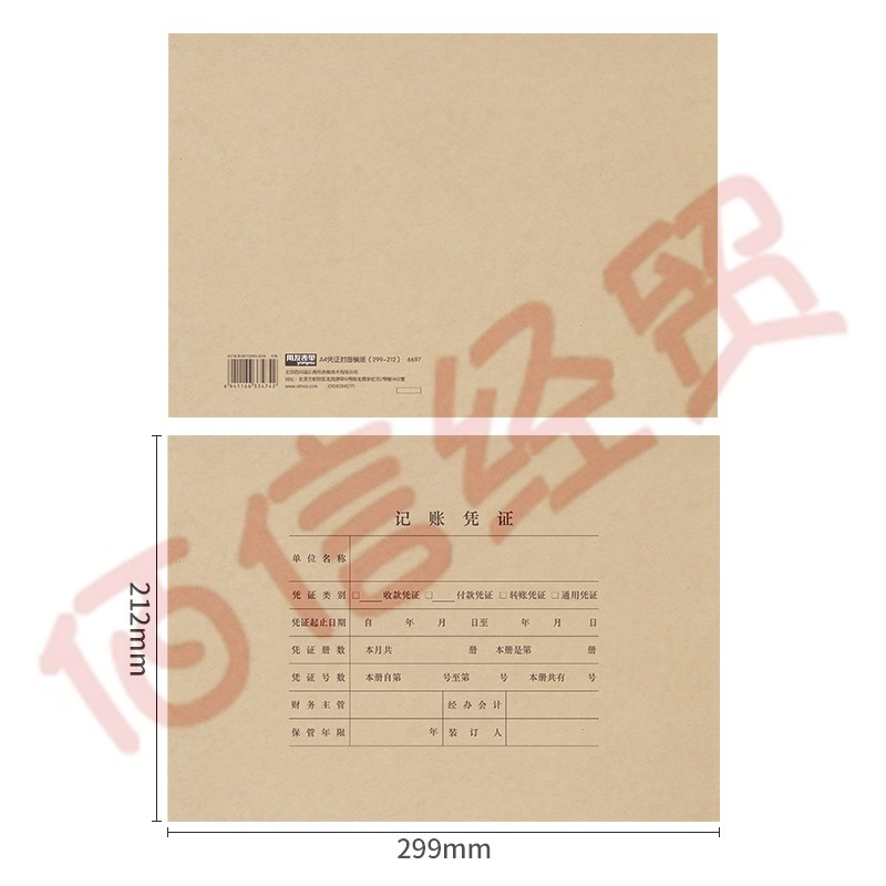 用友表單 A4橫版會計憑證封面6697 加厚木漿150g 25套/包(需單配包角) 記賬憑證紙報銷單據(jù)封皮 【上下聯(lián)】(20包/箱)(單包價-整箱售-拍20組) 自營