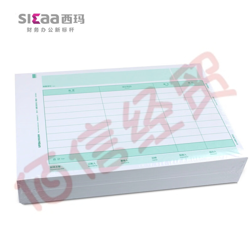 西瑪憑證紙證紙&全A4金額記賬憑證KPJ106H(橫版) 80克純木漿1000頁(綠)--整箱售 自營