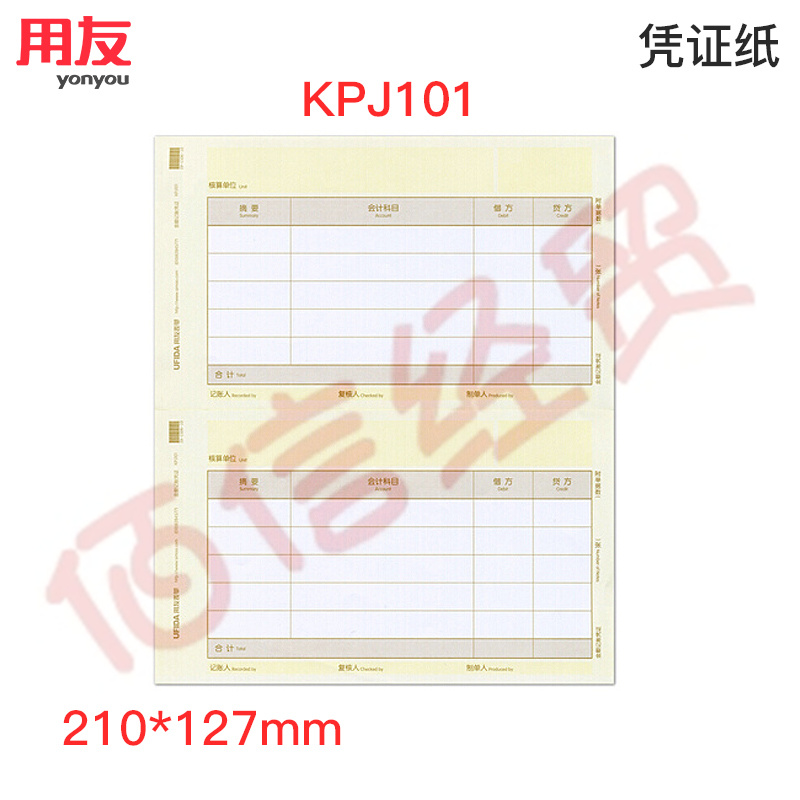 西瑪用友(UFIDA)A4激光金額記賬憑證KPJ101 憑證打印紙 用友軟件T3/T6/U8/好會計 210*127mm 2000份/箱--整箱售 自營
