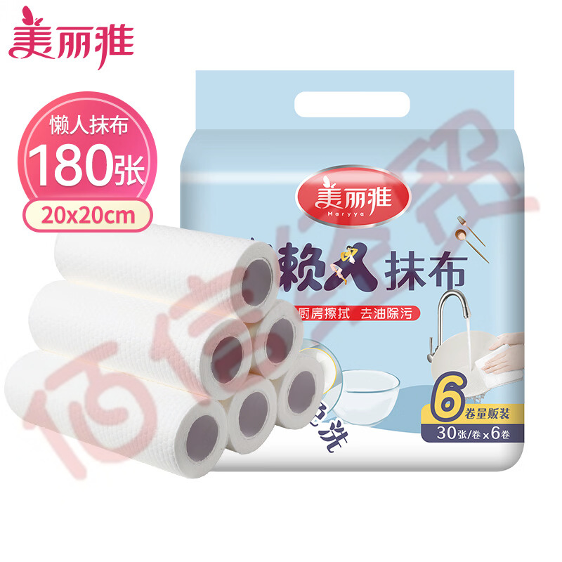 美麗雅 一次性抹布懶人日拋型廚房紙巾不掉毛洗碗布 吸水吸油洗碗巾特惠裝30張*6卷(12袋/箱)(5個起售) 自營