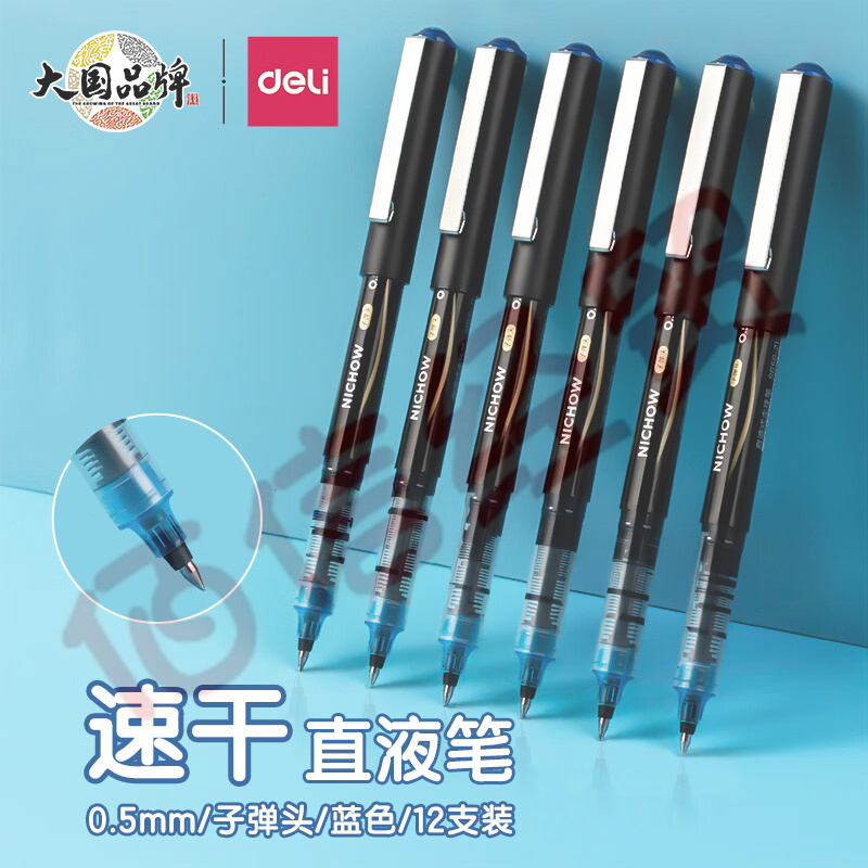 得力(deli)直液筆簽字筆 0.5mm子彈頭辦公商務(wù)中性筆 水筆走珠筆 藍(lán)色 12支/盒S656-Z1 自營(yíng)