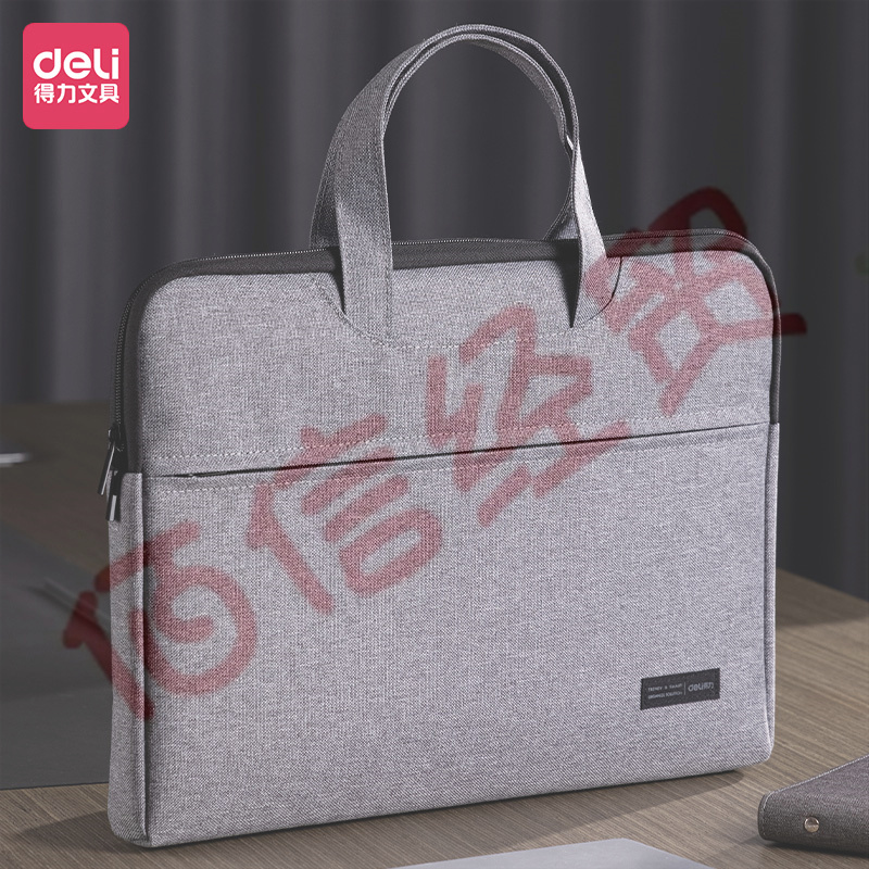 得力(deli)加厚立體辦公手提袋/會(huì)議包/事務(wù)包/商務(wù)拉鏈袋電腦公文包便攜 淺灰5590 自營(yíng)