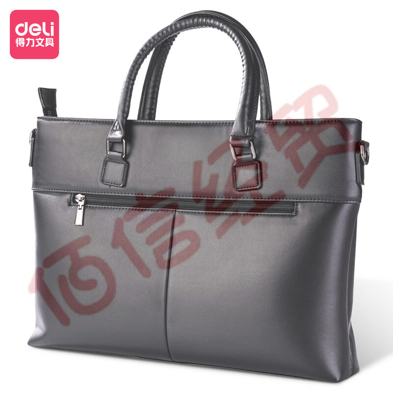 得力(deli)加厚皮質(zhì)立體辦公手提袋/會(huì)議包/事務(wù)包/商務(wù)男女職業(yè)拉鏈袋電腦公文包 黑色63813 便攜 自營(yíng)