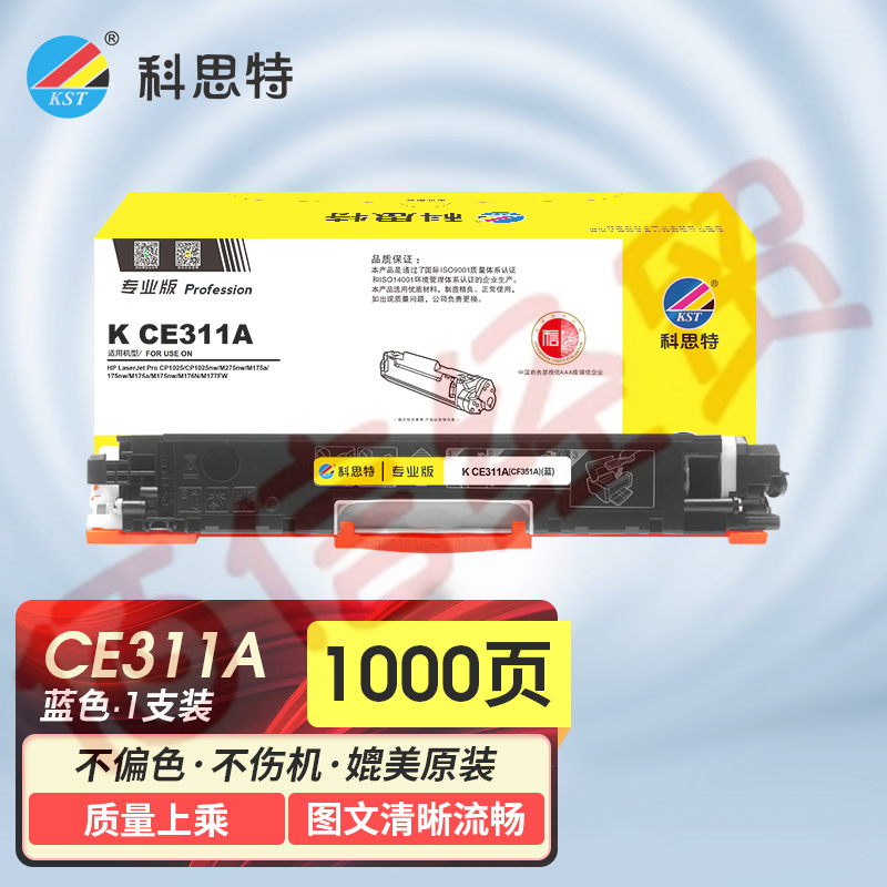 科思特K CE311A/CF351A 粉盒 適用惠普 CP1025 M275nw M175a/nw 可打印1000頁 藍色 專業(yè)版 自營