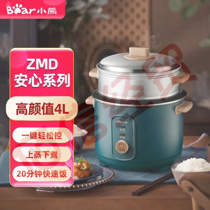 小熊(Bear)電飯煲電飯鍋多功能家用4升迷你米飯鍋蒸飯器配蒸籠1-4人DFB-Q40K5【ZMD安心系列】 自營