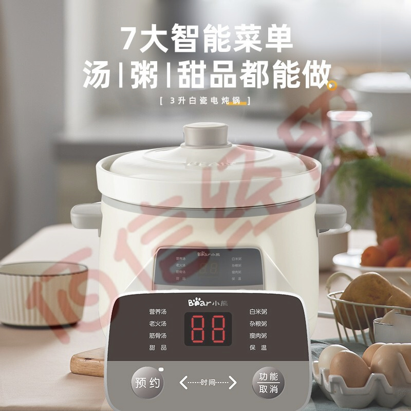 小熊(Bear) 電燉鍋電燉盅煲湯鍋燕窩燉盅燉湯鍋煮粥鍋BB煲 3L容量可預(yù)約多功能 白瓷內(nèi)膽DDG-D30H5 自營(yíng)