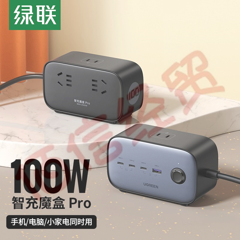 綠聯(lián) 氮化鎵充電器100W智充魔盒桌面插座排插PD多口快充頭Type-C/USB插線板適用蘋果14/13華為小米手機筆記本 自營