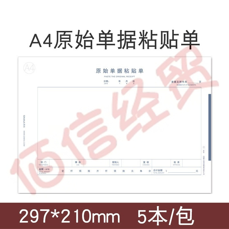西瑪全A4原始單據(jù)粘貼單(橫版)8806 70克木漿原紙 297*210mm 50頁/本 5本/包 12包/箱(單包價-整箱售-拍12組) 自營