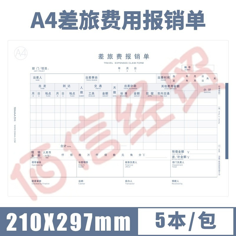西瑪全A4橫版全A4-差旅費用報銷單 8809 50張/本 5本/包 12包/箱(單包價-整箱售-拍12組) 自營