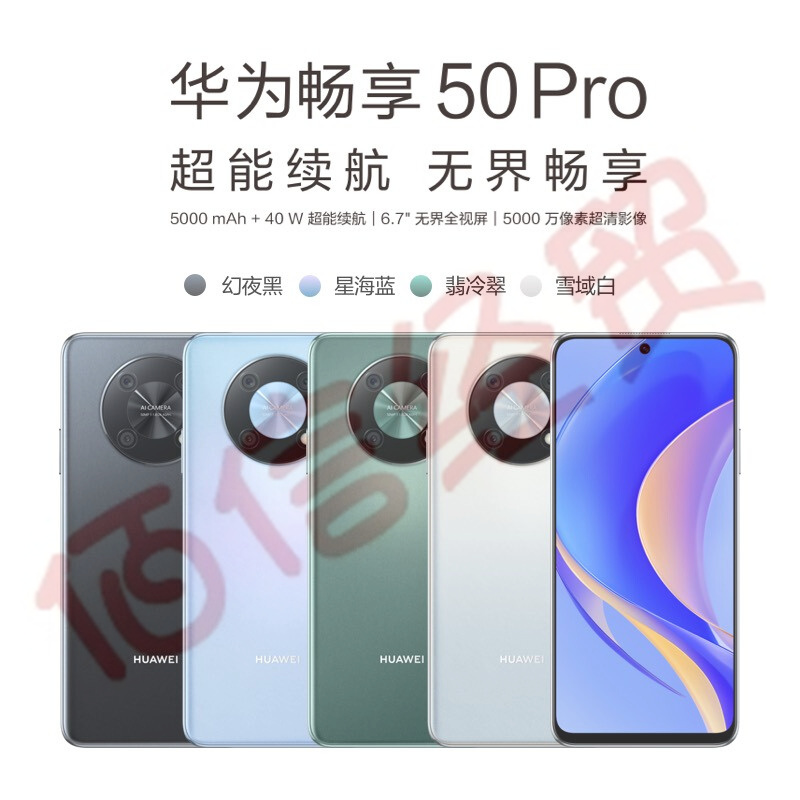華為暢享 50 Pro 5000mAh大電池超能續(xù)航 6.7英寸無界全視屏 5000萬像素超清影像 256G 幻夜黑 華為鴻蒙手機(jī) 自營