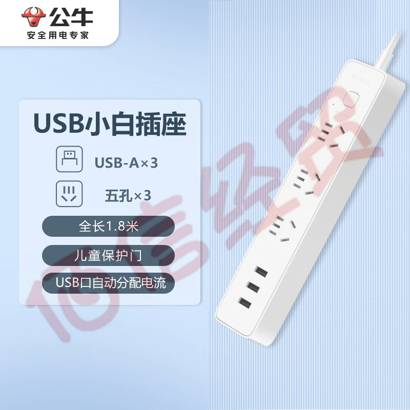 ¥115.40公牛(BULL)20W PD蘋果快充插座/插線板/插排/接線板 Type-c口+USB口+6插孔 全長1.8米白色 GNV-U1206