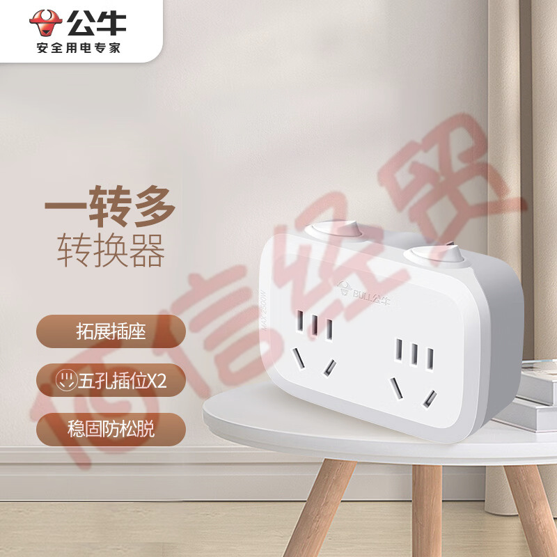 公牛(BULL)轉(zhuǎn)換插頭/一轉(zhuǎn)二插座/無(wú)線轉(zhuǎn)換插座/電源轉(zhuǎn)換器 適用于臥室、廚房 2位分控插座GN-9323 自營(yíng)
