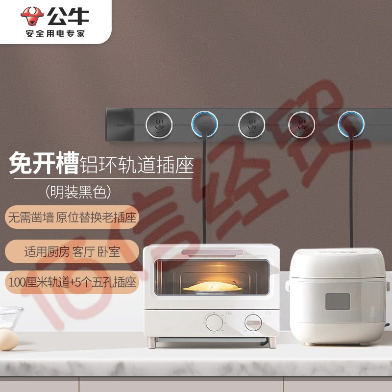 公牛(BULL)明裝 軌道插座 可移動墻壁插座壁掛式/插線板/接線板多功能免打孔 100厘米+5個五孔鋁環(huán)插座黑色 自營