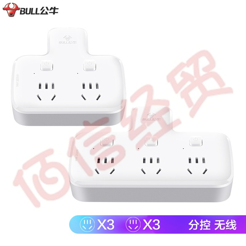 公牛(BULL)插座/插線板/轉(zhuǎn)換插頭/無線轉(zhuǎn)換插座 品字形3位分控+2位分控套裝GN-96033+GN-96023 自營