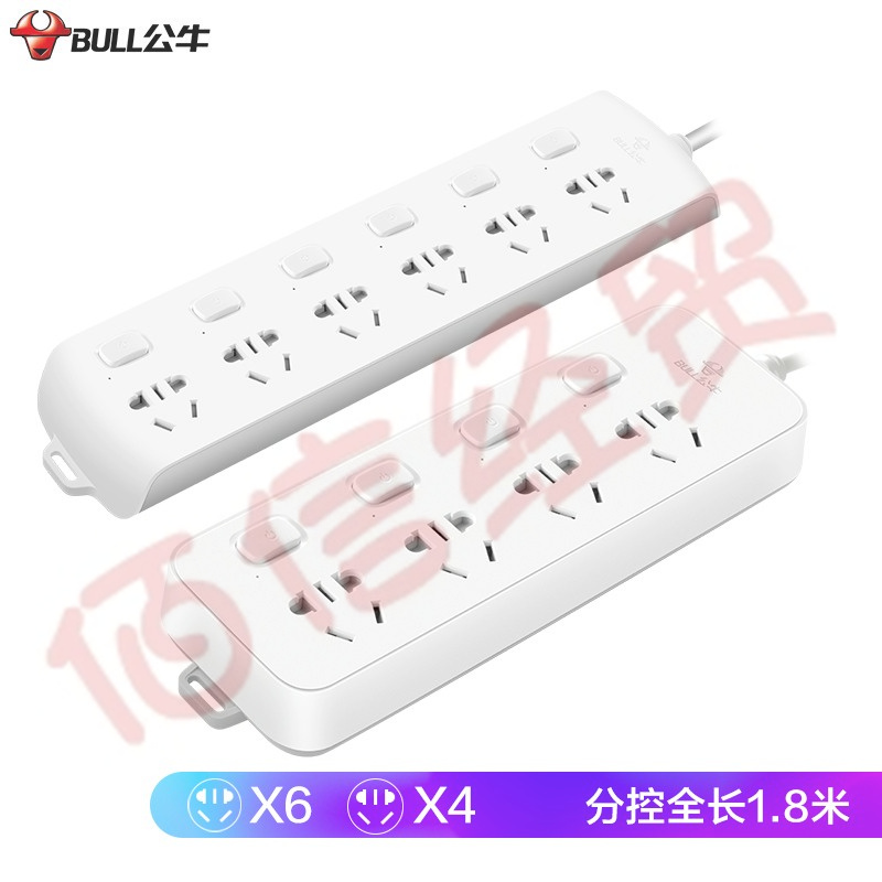 ¥115.40公牛(BULL)20W PD蘋果快充插座/插線板/插排/接線板 Type-c口+USB口+6插孔 全長1.8米白色 GNV-U1206