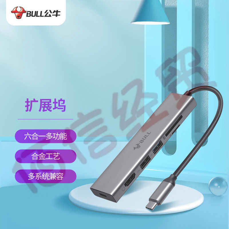 公牛(BULL)華為蘋果電腦轉(zhuǎn)換器 macbookpro筆記本hdmi轉(zhuǎn)接頭usb六合一擴展塢GNV-JH1506 自營