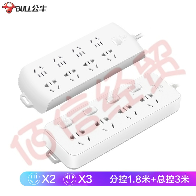 公牛(BULL)新國標插座/插線板/插排/排插/接線板 4位分控1.8米+8位總控3米套裝 GN-B3043+GN-B2080 自營