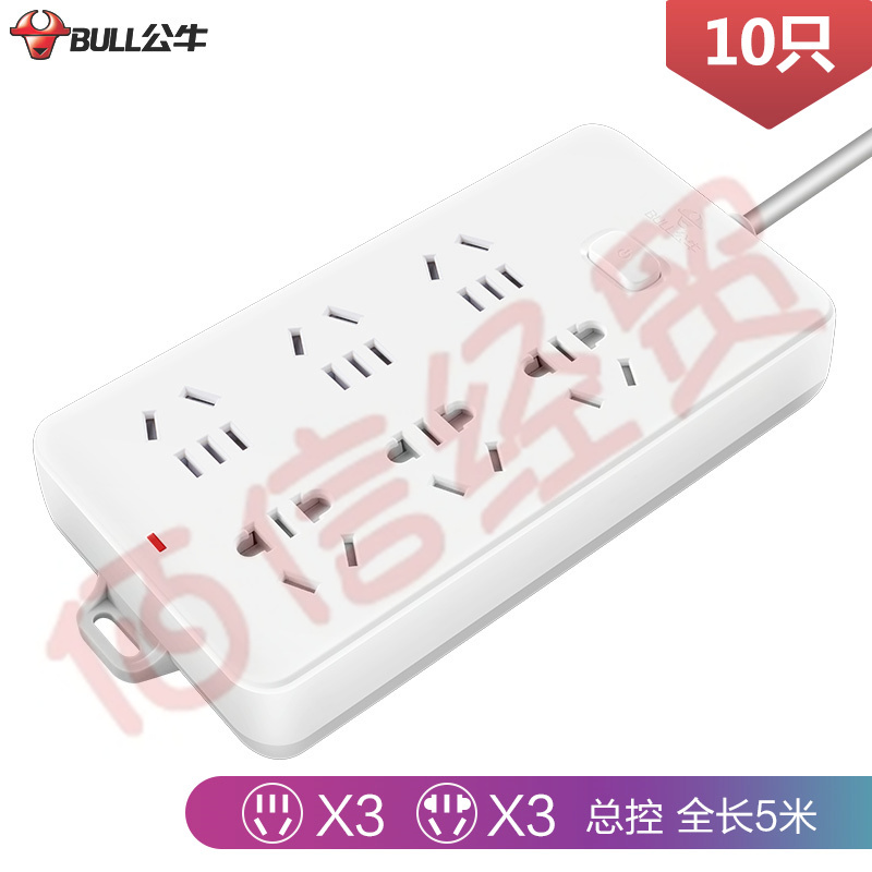 公牛(BULL)公牛桌洞USB插座/插線板/插排/排插/接線板/拖線板 5插孔+2USB口 GN-U2050