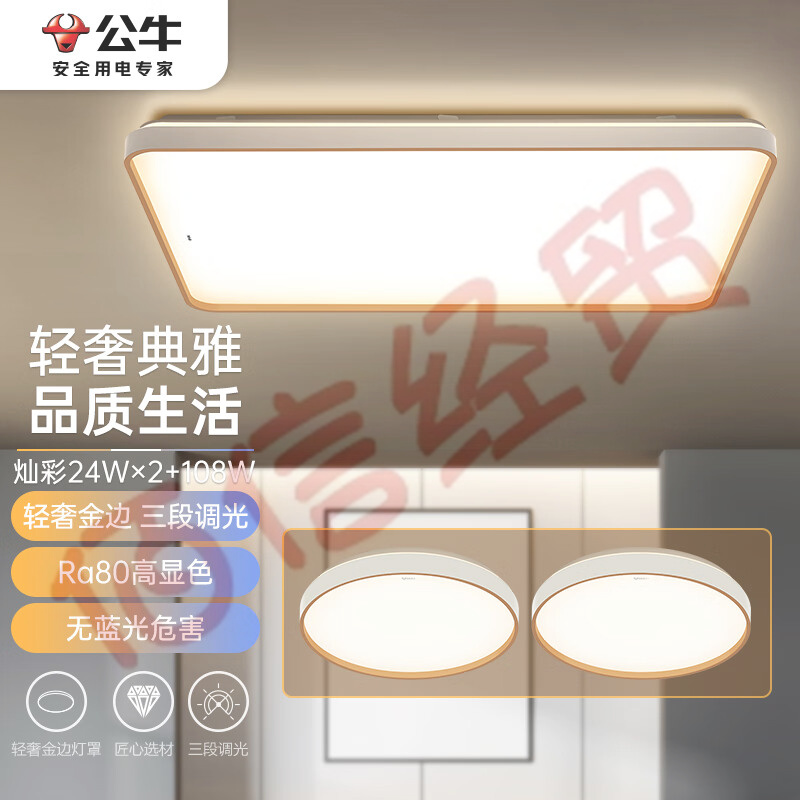 公牛(BULL)LED吸頂燈 北歐現(xiàn)代簡約客廳臥室書房超薄燈具 MX-C108U-BD燦彩【兩室一廳】客廳燈+臥室燈x2 自營