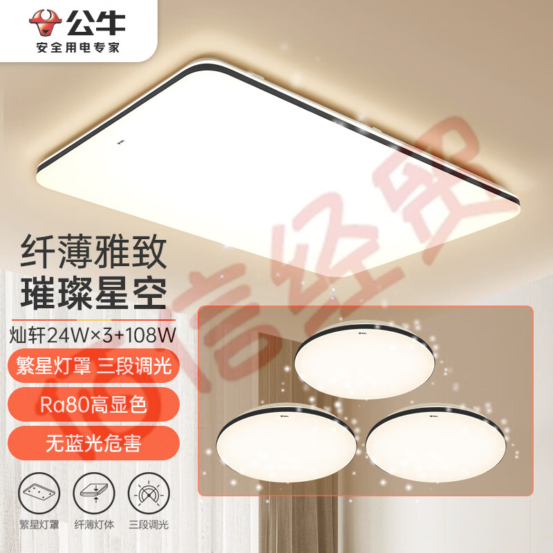 公牛(BULL)LED吸頂燈 北歐現(xiàn)代簡約客廳臥室書房超薄燈具 MX-C108T-BD 自營