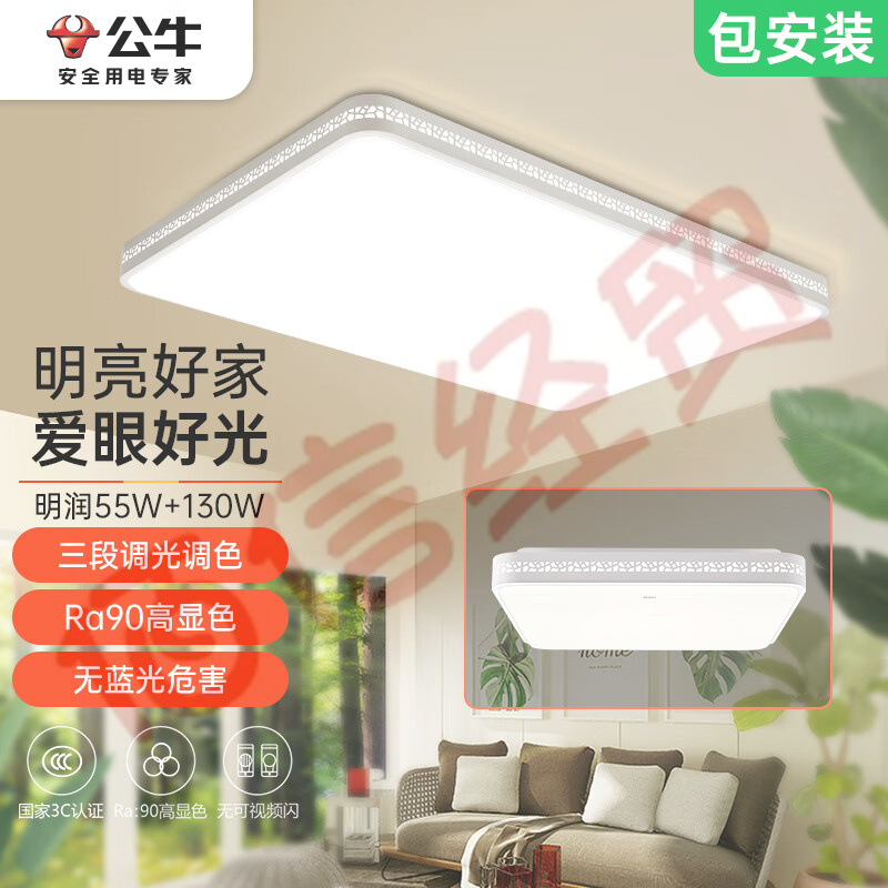 公牛(BULL)吸頂燈 明潤MX-C130D-BS臥室燈客廳燈全屋燈北歐風簡約現(xiàn)代 130W+55W套裝 自營