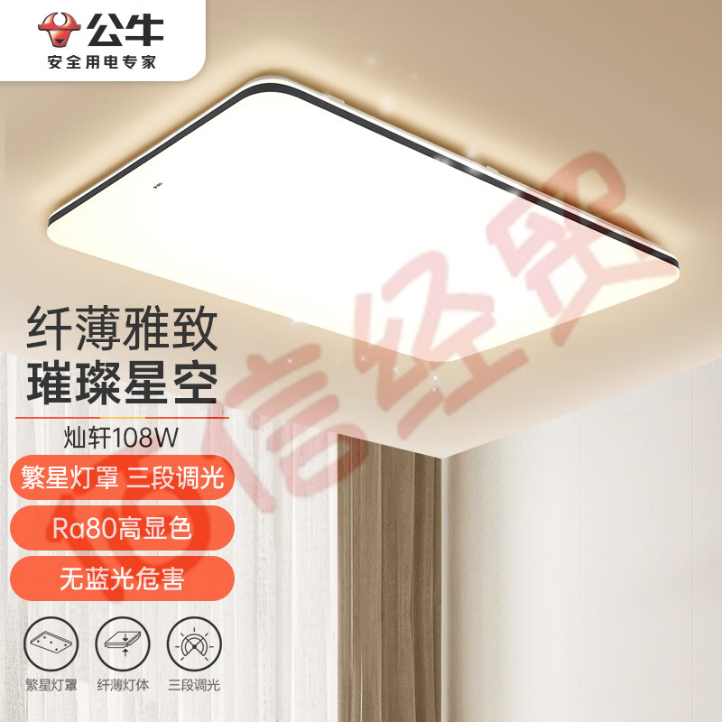 公牛(BULL)LED吸頂燈 北歐現(xiàn)代簡約客廳臥室書房餐廳超薄燈具 MX-C108T-BD燦軒長方形客廳燈108W三段調(diào)光 自營