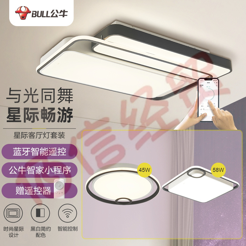 公牛(BULL)LED吸頂燈X36星際MX-M130B-CD無(wú)線遙控/小程序智能控制/無(wú)極調(diào)光燈具 :客廳燈+方形燈+臥室燈 自營(yíng)