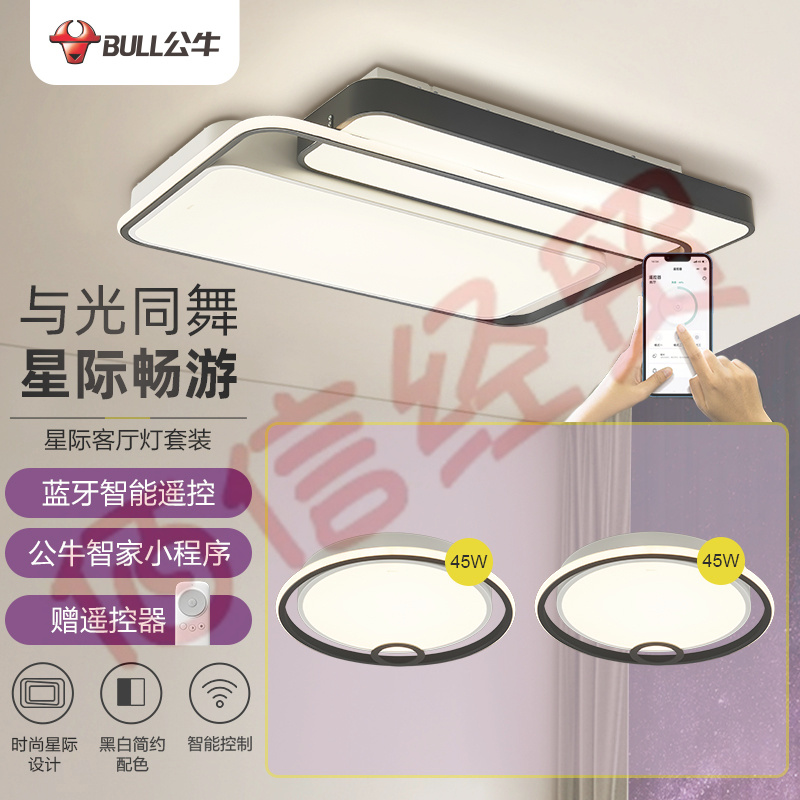 公牛(BULL)LED吸頂燈X36星際MX-M130B-CD無(wú)線遙控/小程序智能控制/無(wú)極調(diào)光燈具 :客廳燈+臥室燈*2 自營(yíng)