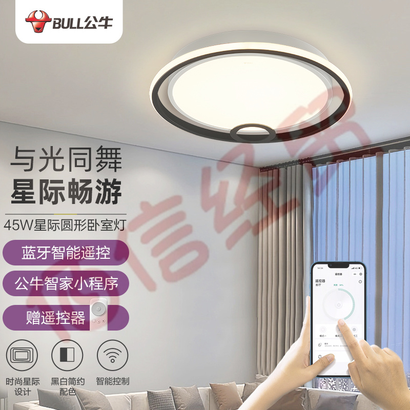 公牛(BULL)智能吸頂燈 X36星際系列 遙控器小程序控制MX-M048B-CD臥室燈餐廳燈 無極調(diào)光/三檔調(diào)色 45W 自營