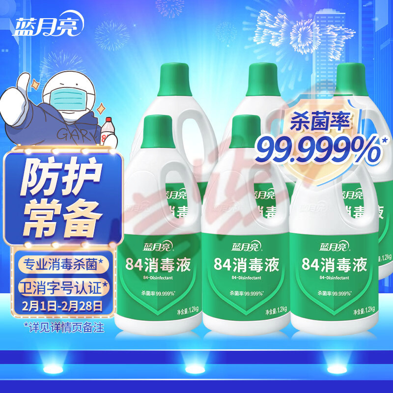 藍月亮 84消毒液1.2kg×6瓶 整箱裝 消毒水 殺菌率99.999% 自營