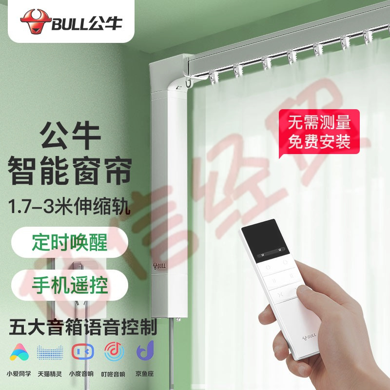 ¥1056.30公牛(BULL)智能窗簾 伸縮軌窗簾 小愛同學小度等音箱控制(電機+1.7-3米伸縮軌+遙控器+免費安裝)GDS015A
