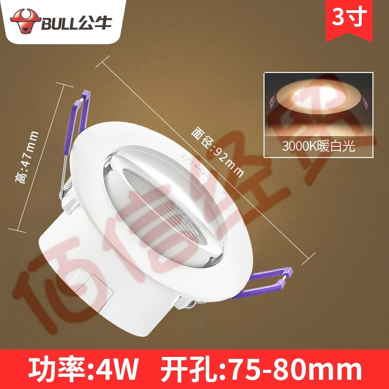 公牛LED射燈式客廳過道天花燈MH-D004A-AS 4W6W/3寸冷白光暖光S01 4W射燈冷白4000K 自營