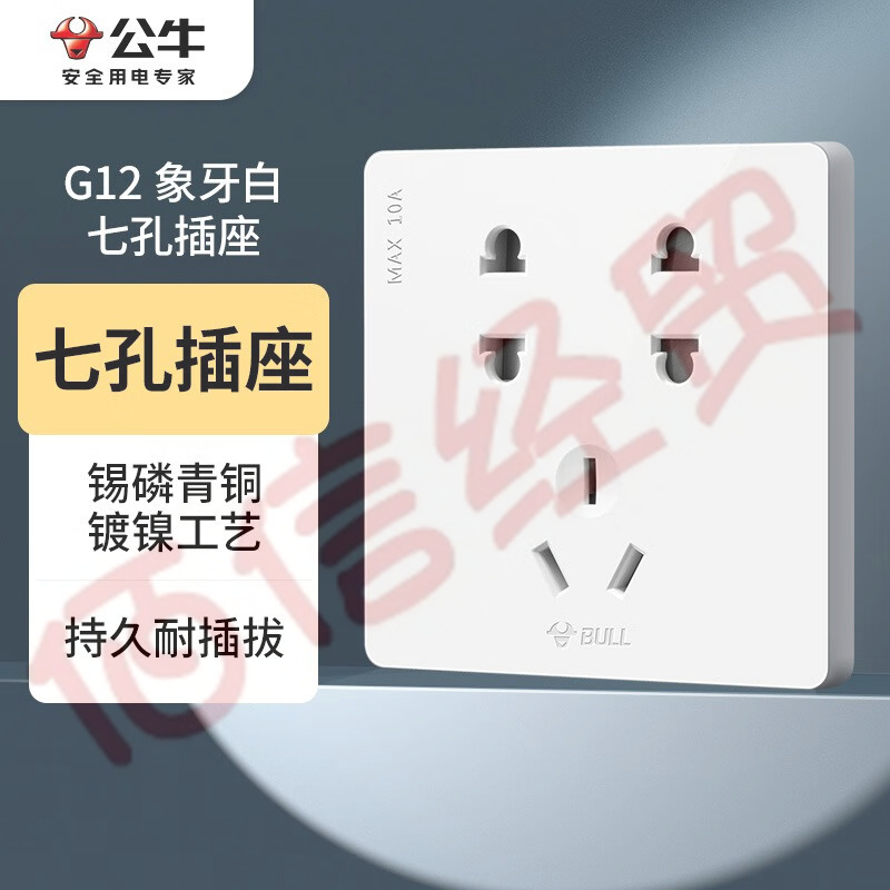 公牛(BULL) 萬家 公牛開關插座 G12白色系列 大面板插座 10A 家用86型墻壁插座開關 七孔 G12Z323