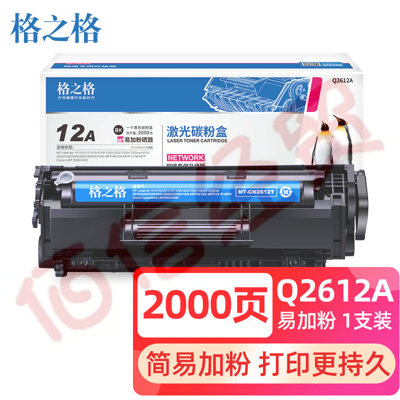 格之格12A易加粉硒鼓 適用hp q2612a惠普1005 1020 1010 3050 1018 3015佳能303 2900打印機墨粉 自營