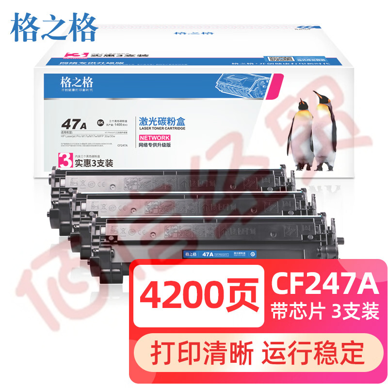 格之格m30w 硒鼓 cf247a硒鼓適用惠普47a硒鼓 m17a m17w硒鼓 hp m30w 硒鼓 m30a打印機 247a墨盒帶芯片三支裝 自營