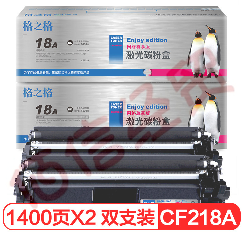 格之格 CF218A粉盒NT-PNH218C尊享版帶芯片雙支裝適用惠普M132a m132nw M104W M104A打印機(jī)硒鼓hp18A粉盒 自營