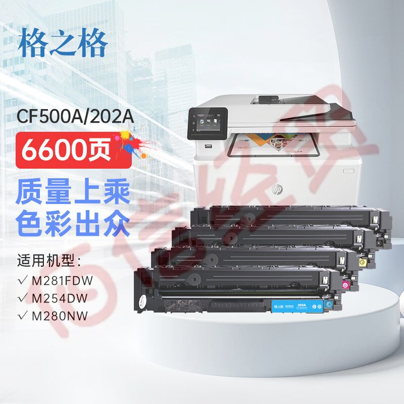 格之格202a硒鼓適用惠普m281fdw硒鼓hp m254dw m254nw m281fdn m280nw打印機墨粉盒帶芯片四色套裝cf500a硒鼓 自營