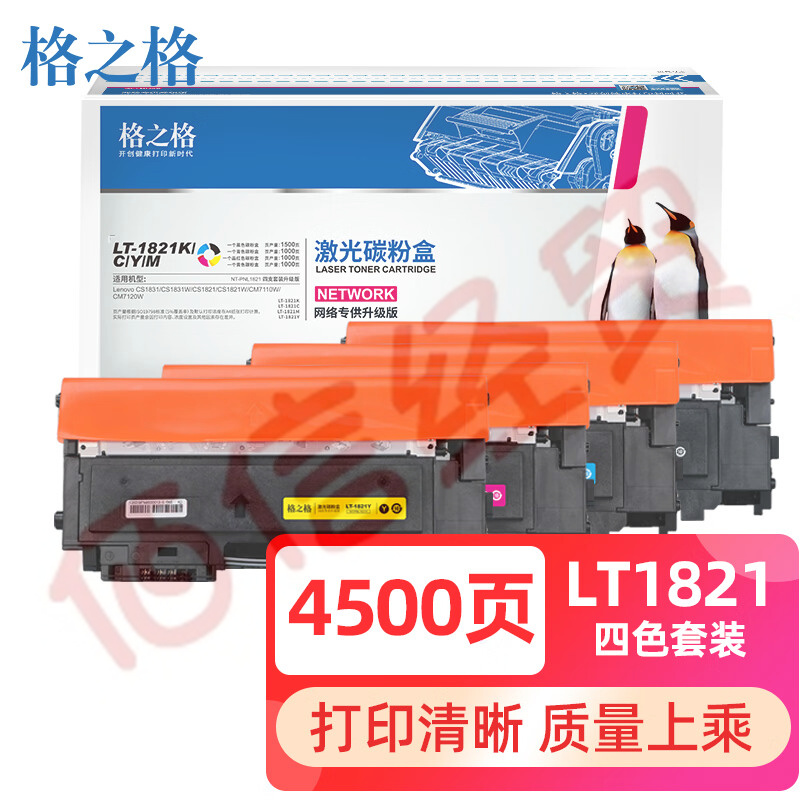 格之格LT1821粉盒適用聯(lián)想cm7120w墨盒 CS1831W粉盒 CS1821 CS1831硒鼓 CM7110W墨盒 LT1821k粉盒四色套裝 自營(yíng)
