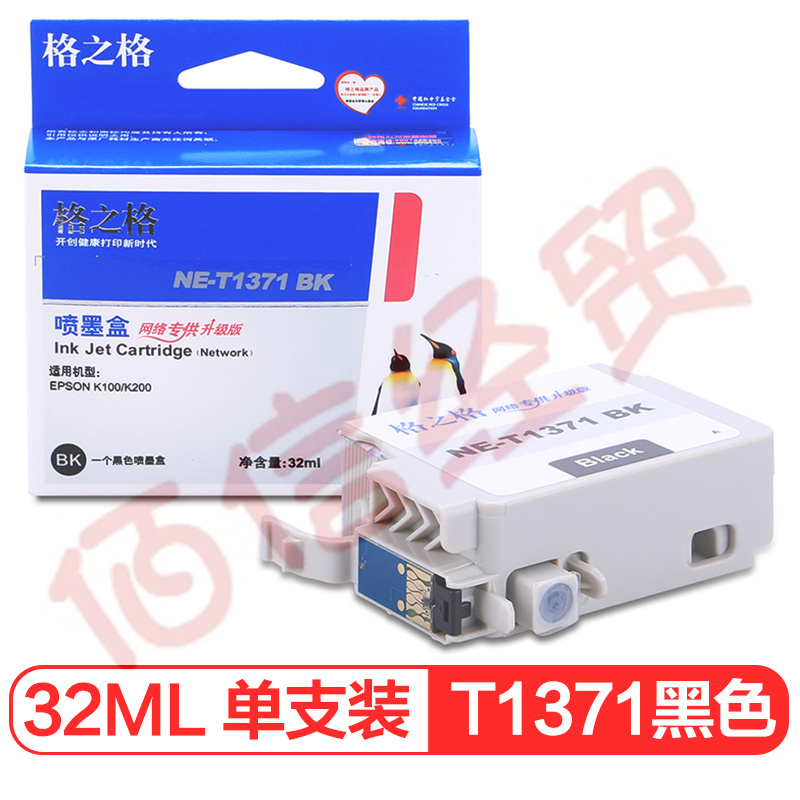 格之格 T1371黑色墨盒NE-T1371BK適用愛(ài)普生K100 K200打印機(jī)墨盒# 自營(yíng)