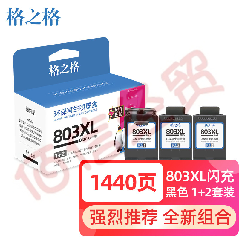 格之格803閃充墨盒適用惠普hp 2622 2621 1111 2132 2600 1112 2130 2131打印機(jī)粉盒黑色1+2套裝 自營