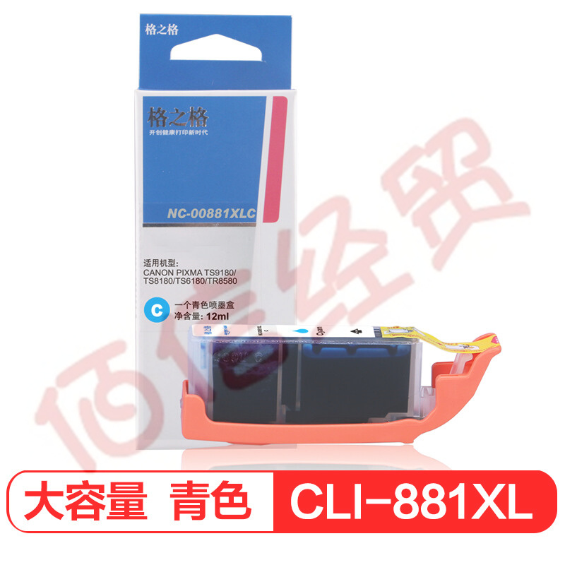 格之格CLI-881XL C藍(lán)色墨盒 適用佳能TS9180 TS8180 TS6180 TR858打印機(jī) 自營
