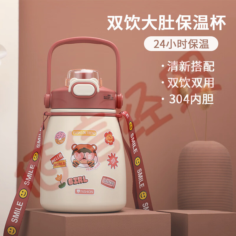 ¥63.00匡迪(DKADI) 新款匡迪兒童保溫杯帶吸管背帶316不銹鋼幼兒園男女學(xué)生水杯寶寶水杯 500毫升粉色 500ml