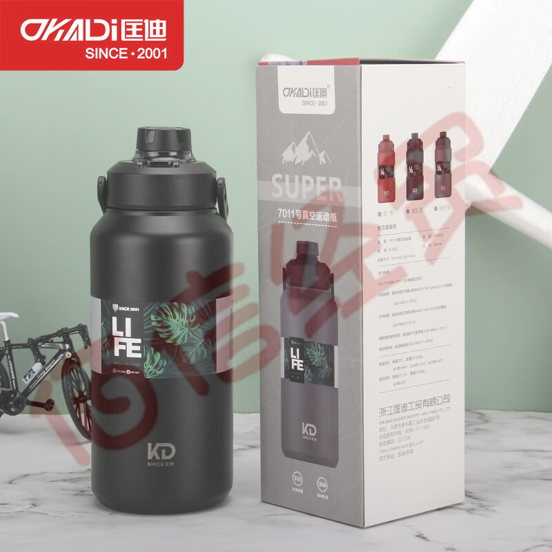匡迪(DKADI) 匡迪7011號真空316不銹鋼內(nèi)膽提手拉環(huán)男女運(yùn)動便攜車載保溫杯 橙色 1300ML 自營