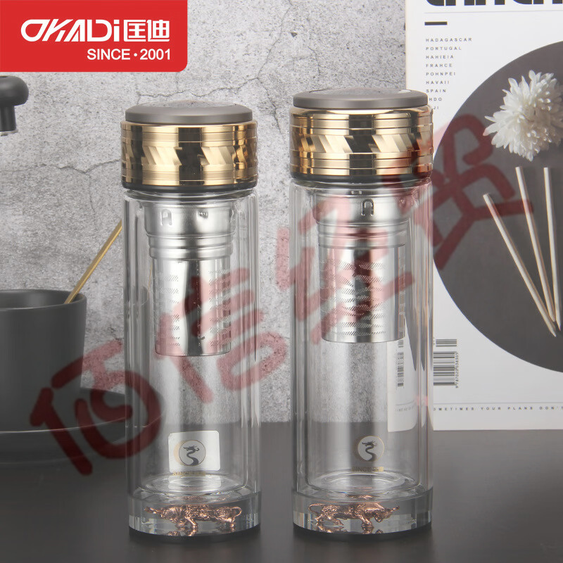 匡迪2107號(hào)雙層高硼硅水晶玻璃杯辦公商務(wù)泡茶禮品水杯可定logo 金色350ML 自營