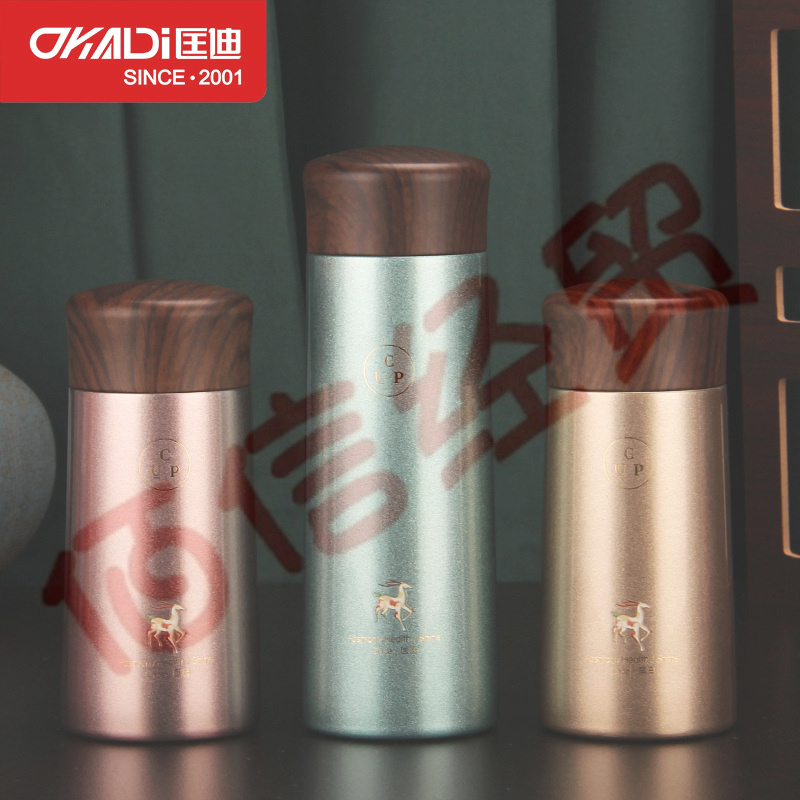 匡迪(DKADI)新款匡迪保溫杯5059號(hào)保溫杯木紋蓋內(nèi)外304不銹鋼保溫杯迷你水杯 粉色200ML 自營