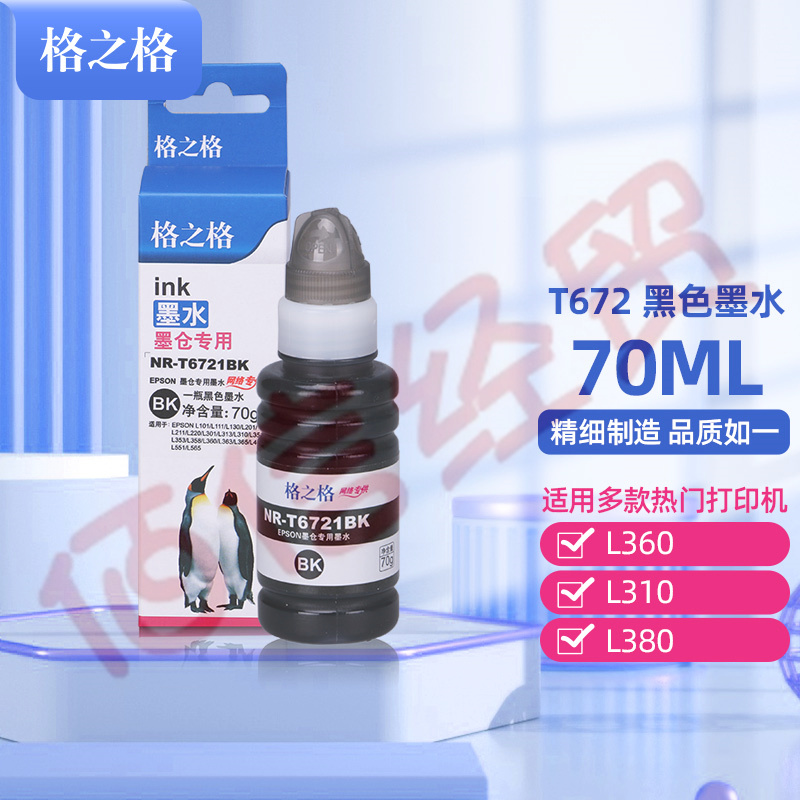 格之格T672墨水黑色適用愛普生L310 L360 L1300 L313 L301 L365 L101 L111 L201 L211墨倉式打印機 自營
