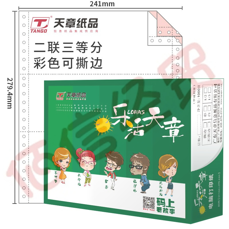 天章(TANGO)樂活天章 針式打印紙 四聯(lián)二等分撕邊電腦打印紙 彩色四聯(lián)打印紙241-4-1/2S 白紅藍黃 1000頁/箱