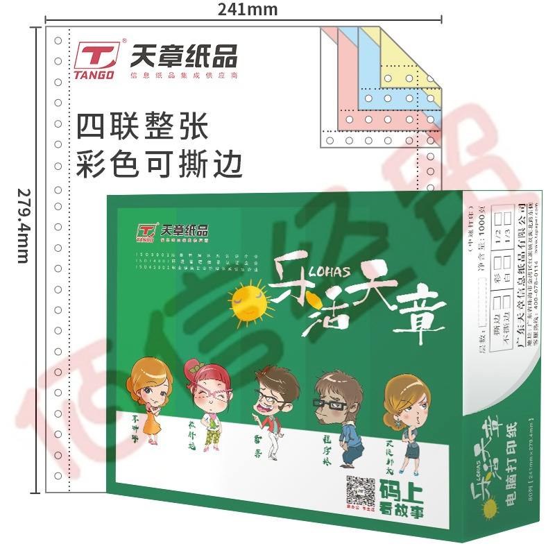 天章(TANGO)樂活天章 針式打印紙 四聯(lián)整張撕邊電腦打印紙 彩色四聯(lián)打印紙(241-4S 白紅藍黃 1000頁/箱) 自營